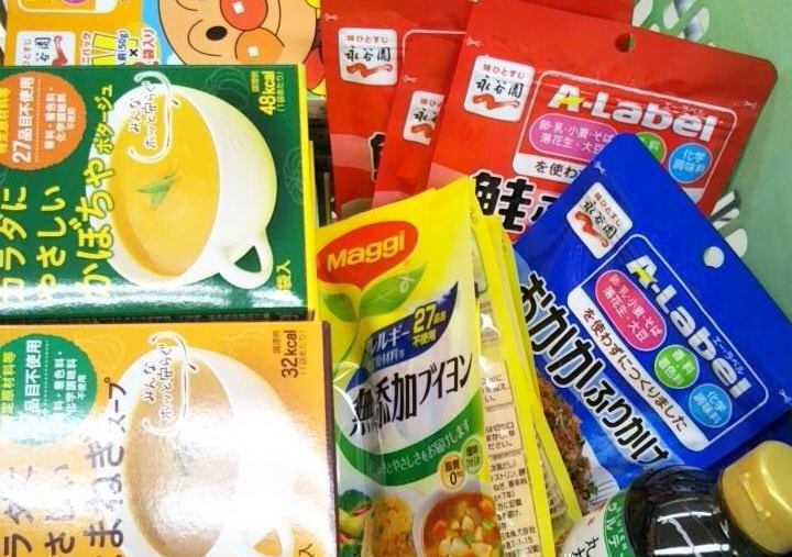 SBドンブリギュウ、KKゼンブリテリヤキ、KKゼンコウヤフコブ、KKゼンキンピラ、1歳からのお好みソース、トンカツの素、お好み焼き·たこ焼きの素、いっしょがいいねプチミート×5、ハンバーグの素、MSこめ粉ロールクッキー×2、子どもと食べたい野菜ケチャップ、マギー無添加ブイヨン、MSコーンスープ、いっしょ野菜入りハンバーグ×10、エーラベルふりかけ鮭×5、エーラベルふりかけ×5、ライスクッキーいちご味×2、お米とコーンのクラッカー×2、エッグケア卵不使用、マルコメリョウテイ、ポップキャンディ、ニアズキヨウカン、チップスターLシオ、ハッピーターン、ハゴロモシャツコーン×2、ポイフルフクロ、ハゴロモミズニL、ハゴロモミズニM、チュウカノモト×4、ラクラクミソシル×2、プチガム×2