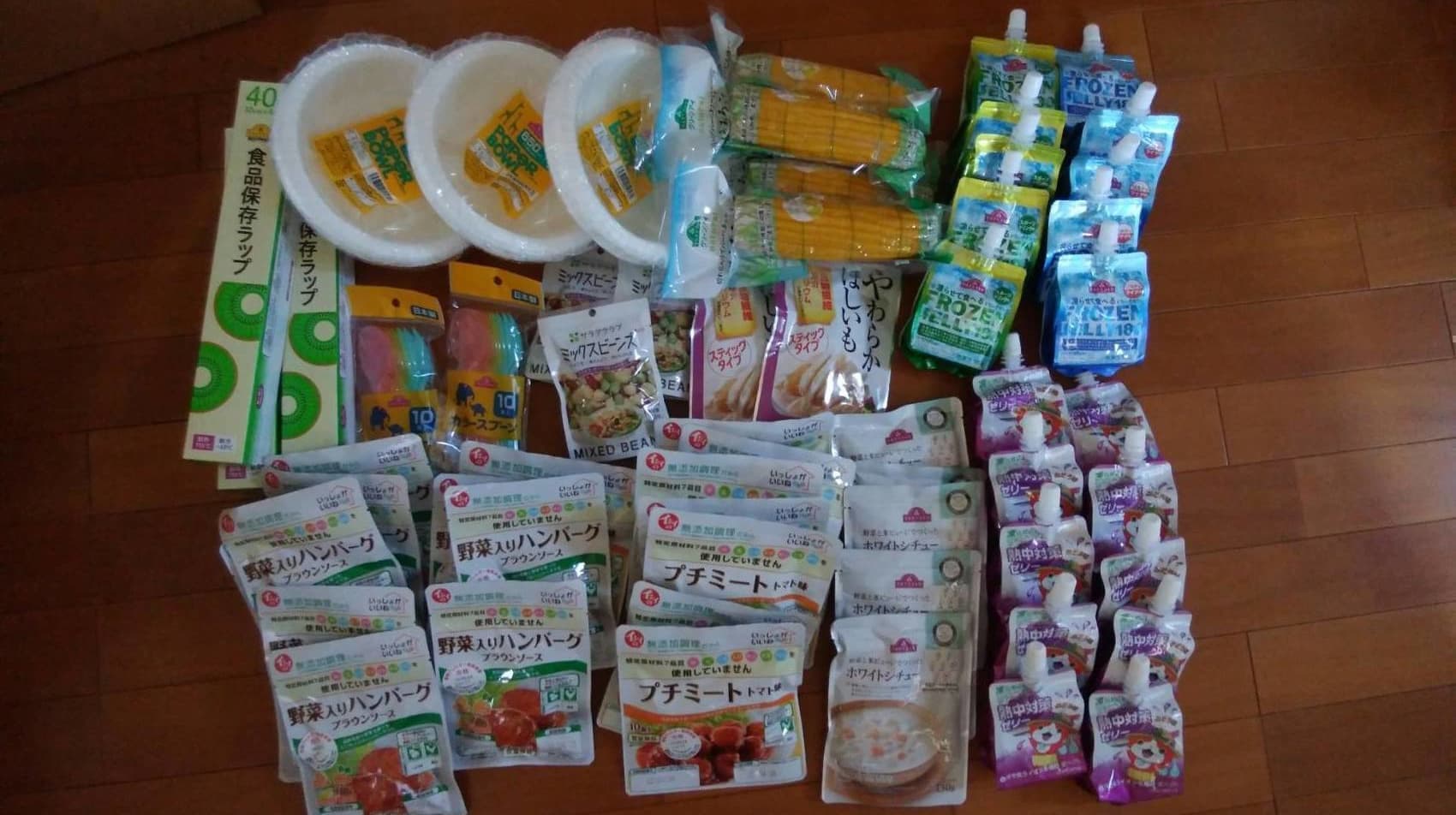 ・富士見にくじゃが×2・マルハサバみそ煮・マルハ月イワシ・マルコメ即席みそ汁・フルーツやさいジュレ・アンパンマンミニ野菜あんかけ丼・アンパンマンハヤシポーク・アンパンマンMカレーポーク・たべっ子ベイビー・やさいのラムネ・やさしいハッピーターン・森のくだもの屋スティックゼリー・アンパンマンソーセージ、×2・スープの王子様・いっしょがいいねプチミート×2・いっしょがいいね野菜入りハンバーグ×2