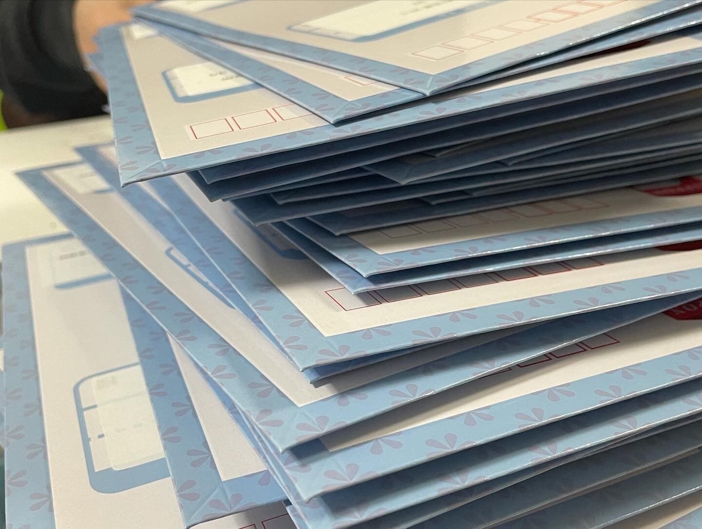 宛名を貼るステッカー貼り作業、今回もコロナの関係で少数精鋭でする予定です。