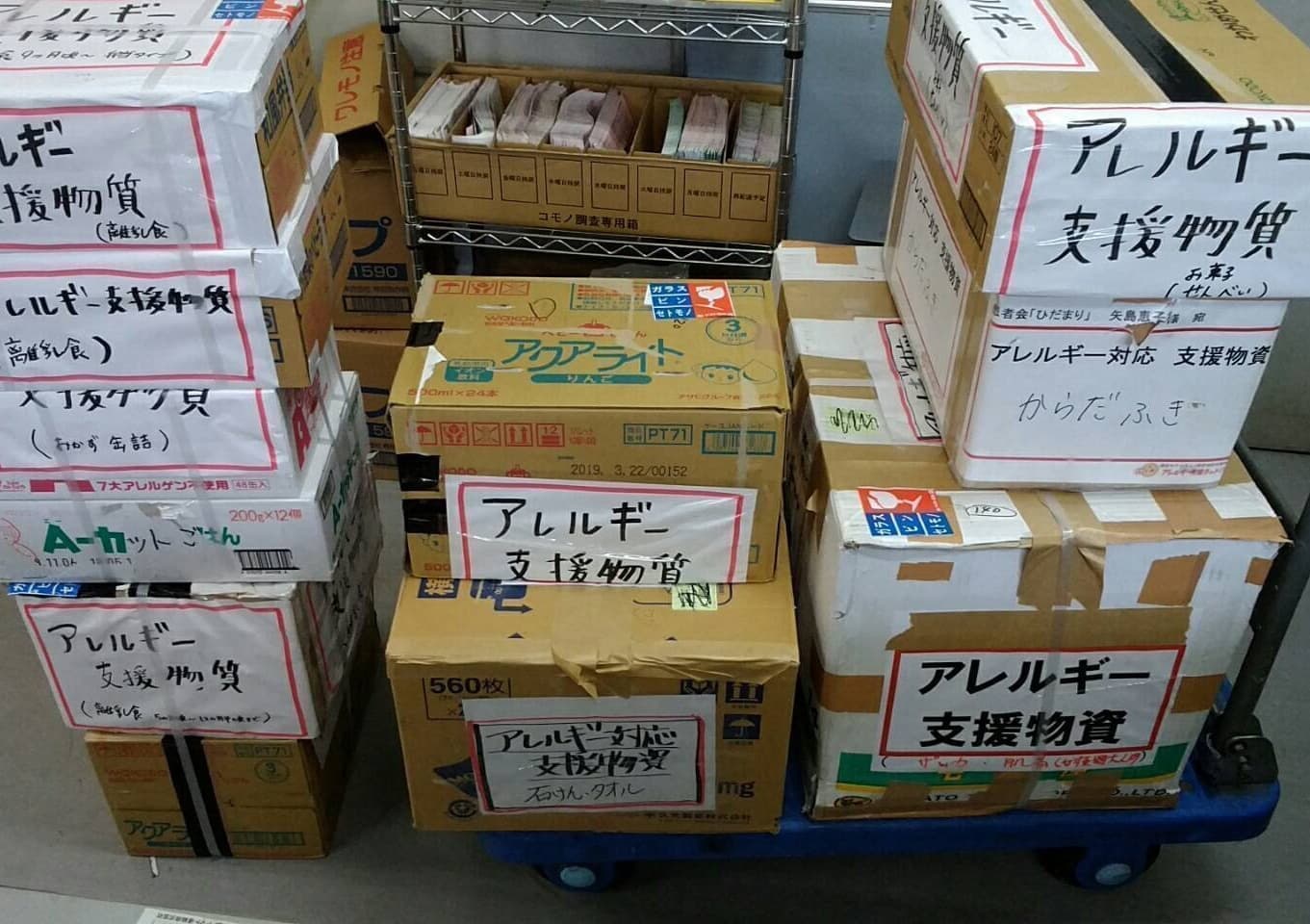 現在、三原市など、アレルギー対応物資の受け入れ体制のあるボランティアセンターなどに対して、会からの具体的なニーズに沿った物資を購入し送付しています。(LFAとしては7月10日、14日、会員からの寄付金にて約7万円相当分送付)