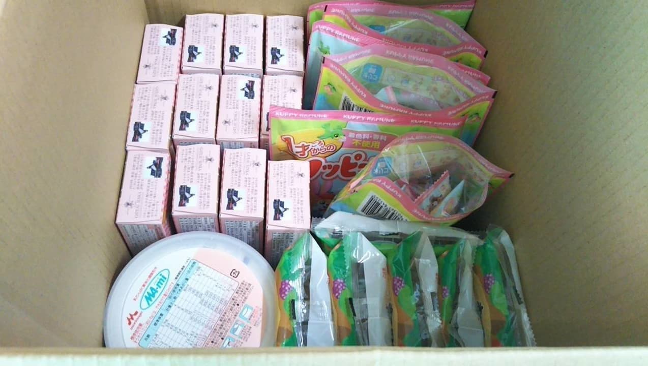 ・おさつどきっプレーン×5・ソイジョイバナナ×2・ソイジョイミックスベリー×2・ソイジョイプレーン×2・ソイジョイピーチ×2・ソイジョイゴールデンベリー×2(全部クリスピー略した)・WINマルチビタミンゼリー×6(2,182円)・小魚せんべい×2・ピジョン野菜&ぶどう×5・ミネラルアクア×5・フルーツでおいしいやさいジュレ×2・お野菜スナックかぼちゃ×2・お野菜すなっくニンジン×2・元気アップcaブロッコリー×2・お野菜せんべいほうれん草×2・ひじきせんべ×2・クッキーさつまいも&きび×3・すくすくクッキーほうれん草×2・すくすくクッキーチョコ×3・やさしいハッピーターン×5・ポップキャンディ×4・ドラえもんフルーツゼリー×2・ルパンvsバトルレンジャー×1・プリキュアフルーツゼリー×2・フレンドラムネディズニー×5(13,216円)・ゆであずき低甘×5・都こんぶ×6(1,125円)