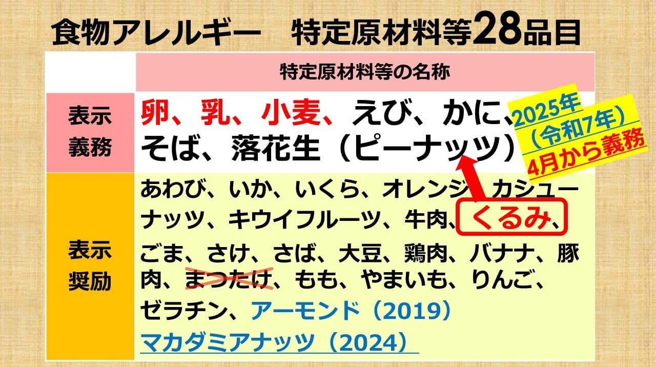 ※2025年4月【くるみ】が表示義務に変更へ。現在、ラベルなどの表示を変更していく移行期間です。