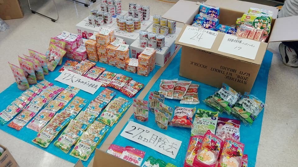 昨年は、商品協賛もありましたが、3種類各400円ほどアレルギー対応備蓄品を3種を箱買いし、ばらして商品を送りました。その購入費用に充てます。費用の集まりによっては、品数は減ります。