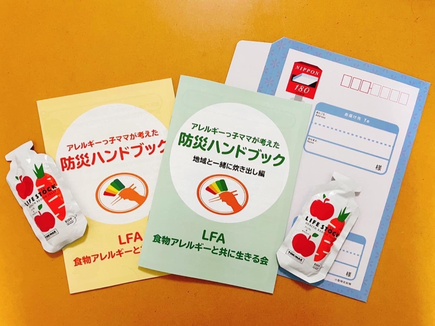 被災地体験のある当事者の声を集め、【アレルギーっ子ママが考えた防災ハンドブック】を作成しました。クラウドファンディングで5万部作成し、全国のアレルギーの会に協力して頂き配布しています。